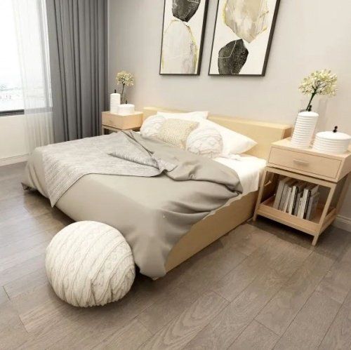 在地板选择上,通常选择以中性色为主,例如久盛原木色、灰色系地板等,利用木材本身的质感和天然的纹理,与巧妙的设计相融合,展现出清新朴素的自然之美。