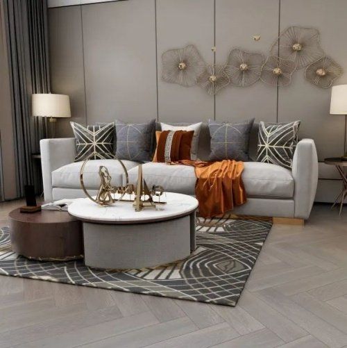 法式风装修,莫兰迪色的墙面必不可少,低饱和度的色调为家带来一丝浪漫的色彩。各种造型的地毯是极好的装饰品,地毯亲肤的触感让家倍显温馨舒适。装饰画提升家居时髦度,充满艺术感的抽象画、几何图案、人像画等营造出自然不刻意的氛围。