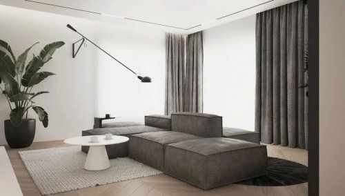 现代简约风以中性色为基调,想要走性冷淡风可以选择黑、白、灰等。现代风讲究线条与光线的匀称,倾向选择简洁但设计感极强的家具,充满个性又给人以开阔之感。