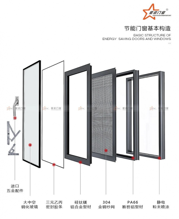 它同时精选三元乙丙胶条,耐老化,不褪色,密封好,保证门窗整体密封性能,隔音效果好。多级密封,多层密封,使冷风和外界的噪音无法穿透钻探,达到完美的保暖隔音效果的同时减少声音外泄,保障您的隐私。星派门窗在采光,隔音,保温,节能等方面性能更加优异,让你享受更加舒适的生活。为了实现更高的产品质量和生活体验,星派门窗选用原装进口五金,自主铝合金生产线,使用国际先进工艺,从源头处理密封框架结构安装和使用的安全问题。采用标准化的测试和安装,保障每一份产品的使用安全。