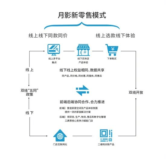 月影家居打造五同互联的新零售模式,线上店铺与线下门店互通,实现线上线下同产品、同价格、同优惠、同售后、同服务,线上线下权益相同,有效构建线上线下互补的良好生态。