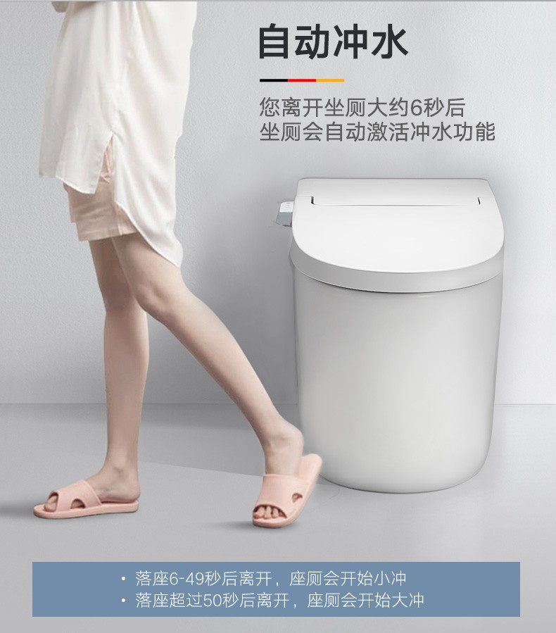 自动冲水功能也真的很能提升生活的舒适度,高仪智能马桶在人离开座圈6秒左右就能自动感应冲水,50秒之后就会开启大冲,IPX4等级的防喷溅设置,不会出现外面公厕感应出水溅的到处都是的情况。