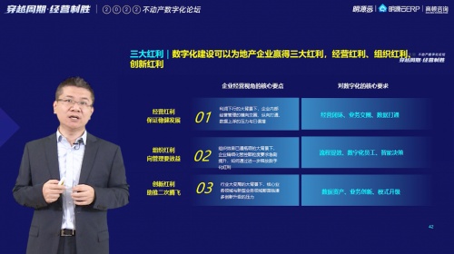 行业变化对房企的新要求:过去企业的管理体系关注单条线的业务能力,而现在更看重一体化的经营能力,同时,数字化能力转型“成为下一代房企的必答题”; “下一代房企”数字化成功标尺是能支撑经营者决策更理性、更高效、更闭环,由数据驱动业务、业务与经营联动,实现理性、高效、闭环决策。