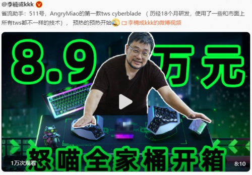 CYBERVERSE全家桶包含怒喵人体工学分体键盘 AM HATSU 艺术家 SHEK 手工涂绘做旧版、怒喵 CYBERMAT R2 无线充电魔毯等怒喵硬核科技产品,怒喵首款 TWS 耳机 CYBERBLADE 也在其中。不过,在本次开箱中,李楠并没有为我们直接展示 CYBERBLADE 的外观细节,只表示这是一款努力了十八个月、想要打败苹果的 TWS 耳机新品。